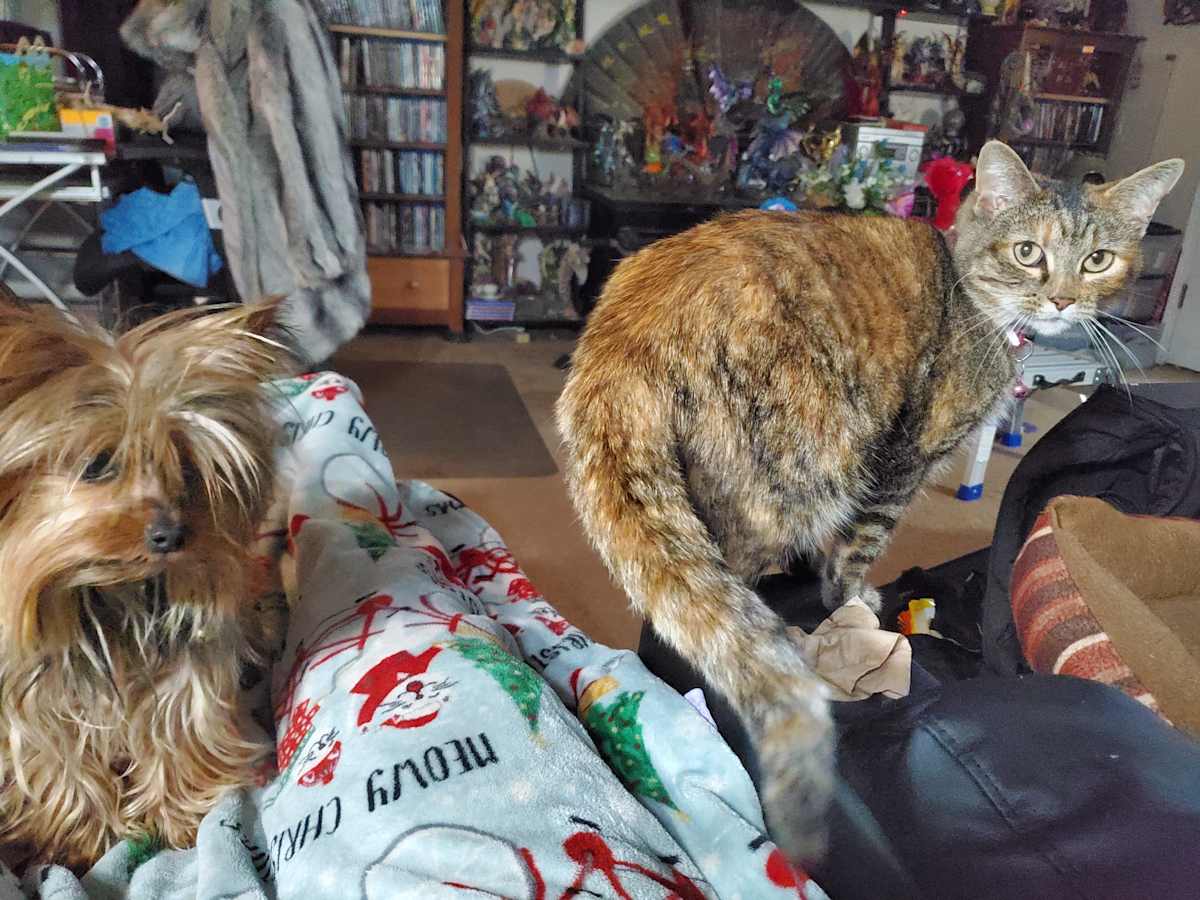 Sometimes Tigra would try to get him to play—batting at his tail, or hopping onto the recliner like a dare.