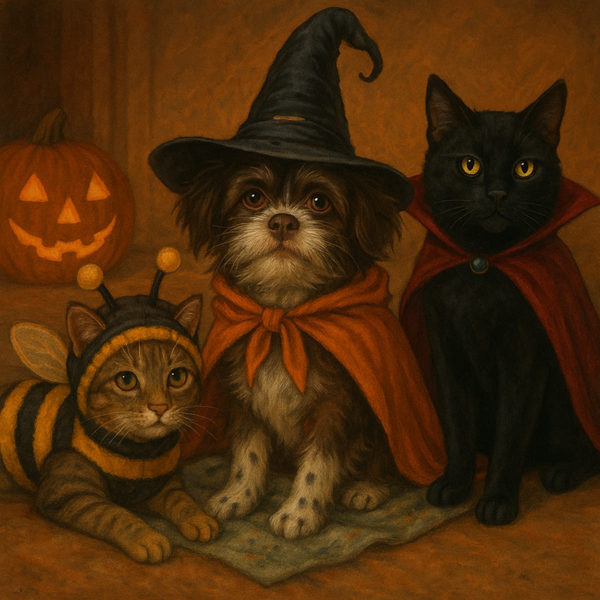 It took a broom handle, a little pushing, and a lot of muttering before the raccoon finally popped free with a startled squeal, scampering off into the moonlit yard. Quigley barked after him, convinced he’d made a new friend. Tigra sat by the door, tail twitching. “Do you think he’ll come back next Halloween?”