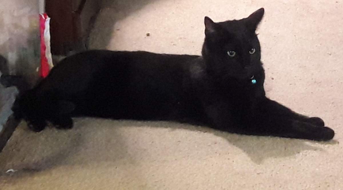 Wick is our sleek, moody house cat. Long and lean like one of those ancient Egyptian statues—if those statues had a thing for warm laundry and judgmental silence. He moves like mist and stares like a disappointed professor.